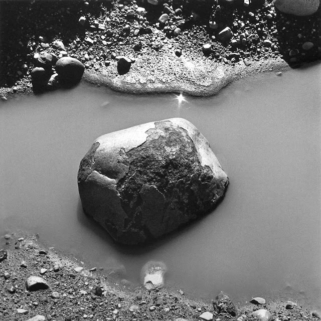 When I lived in New Mexico I was always attracted to large rocks just laying in the landscape all alone. I was always trying to make that photograph and never succeeded. It’s tricky making a thing photograph: I want the thing to be able to speak for itself, but the context in which it sits is part of it’s “voice.” On the other hand if you pay too much attention to the context, then the thing simply becomes one part of a formal composition. So, it seems to me I was learning about photographic and emotional directness in the Intimate Landscape series; not only directness to things but also directness to space . . . which the lake pictures are about in some ways.