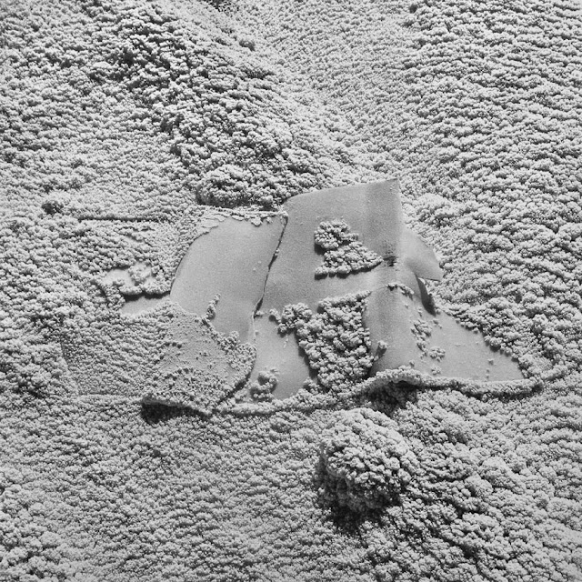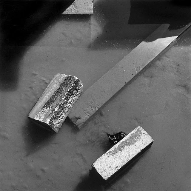 The negative prints are very light, clean and luminous; the intimate landscapes are dark and industrial dirty. The lake pictures are airy and spacey; the intimate landscapes are close-up and claustrophobic.