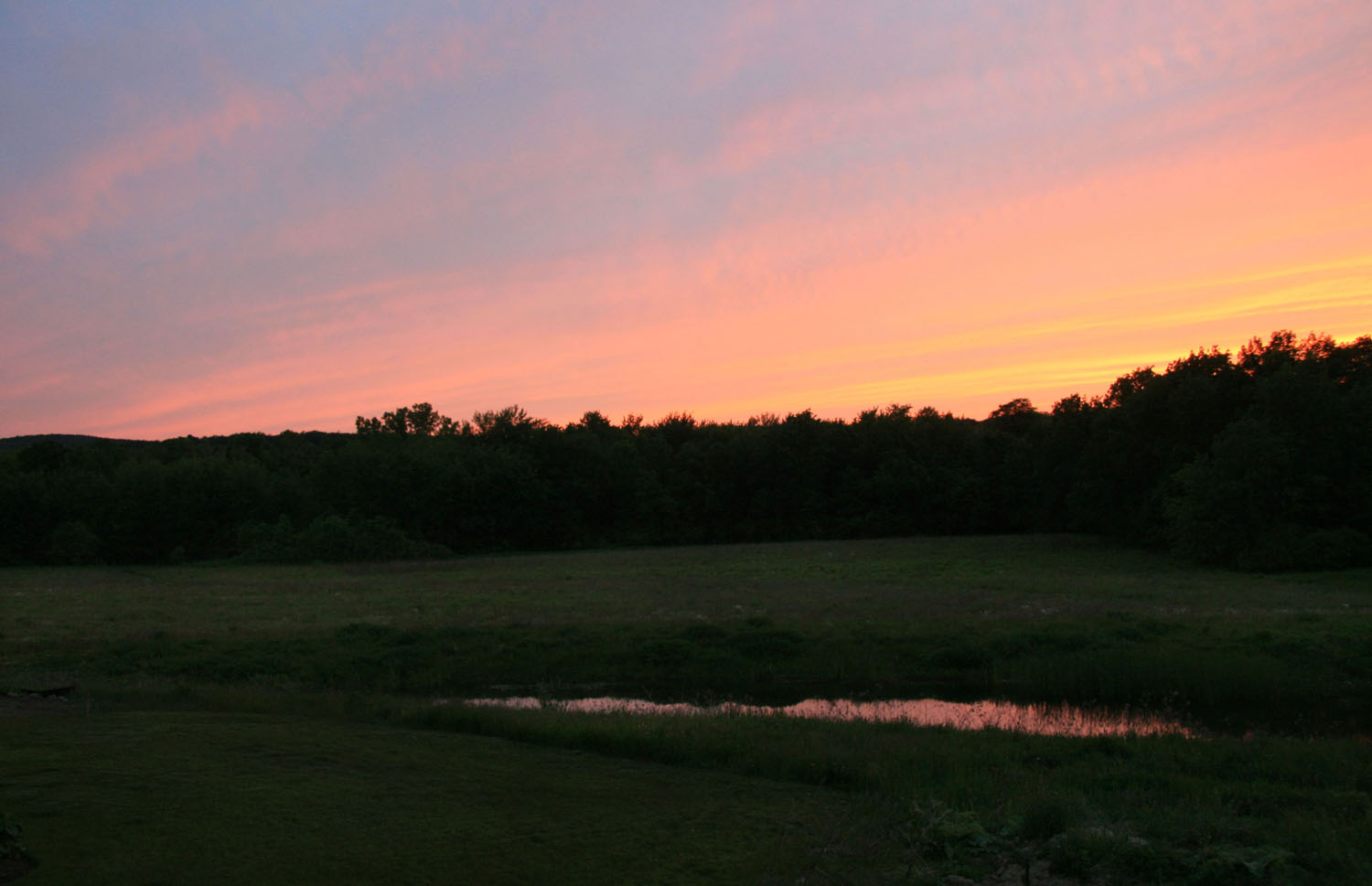 My wife and I live on the edge of a beautiful meadow not far from Canandaigua Lake, one of the Finger Lakes of NY State . I love watching the daily and seasonal changes of light, color and atmosphere that transform the meadow, sky and the tapering woods behind it. There are two ponds in the meadow: they not only reflect the light of the heavens; they are like eyes which are constantly watching us humans and our various forms of folly which threaten the well being of the natural world.